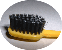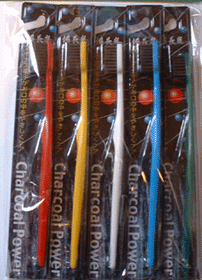 | 備長炭ハブラシといっても、口の中が真っ黒になったりすることはありませんのでご安心を。こちらの備長炭ハブラシは、ブラシの部分に備長炭の微粉末を練りこんでいるもので、備長炭が水の分子を微粒化し、消臭作用や歯垢をよく吸着します。タバコを吸われる方にもおすすめです。